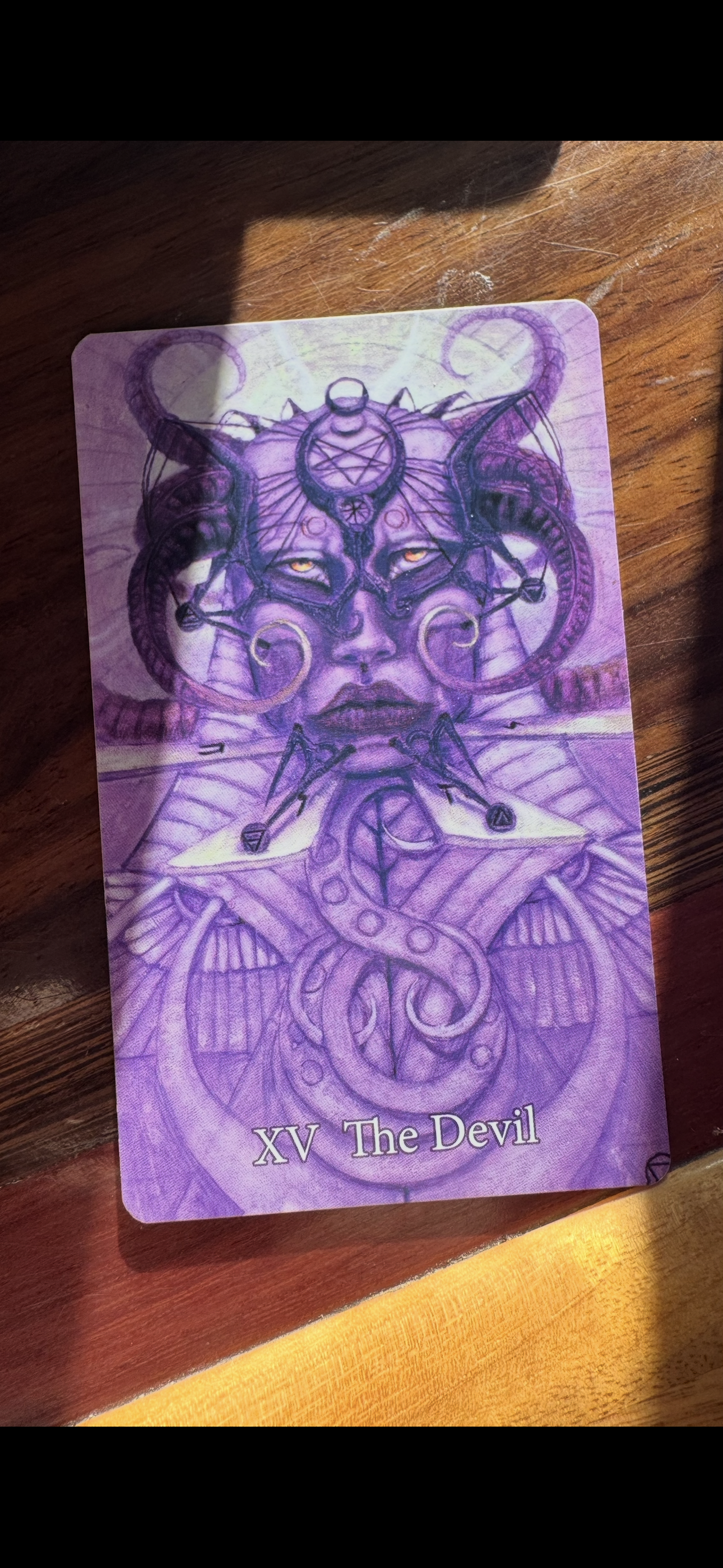 To begin, I anointed the deck with a sample of Poltergeist by Heretic Parfum. While it’s too intense for me to wear personally, I love the scent! Herbaceous, smoky, and deeply mysterious. It smells like a damp forest at dusk, which fits the energy of the Mary-El perfectly. Now, whenever I open the deck box, I’m instantly transported into a dark, mythic underworld.